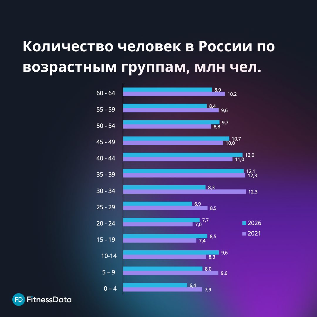 Несмотря на то, что демография будет постепенно менять структуру спроса и доля старших возрастов в фитнесе будет расти и продукты для людей "серебряного возраста" будут все более востребованы, рынок не ждут радикальные перемены. Мы продолжим следить за динамикой и делиться обновлениями.