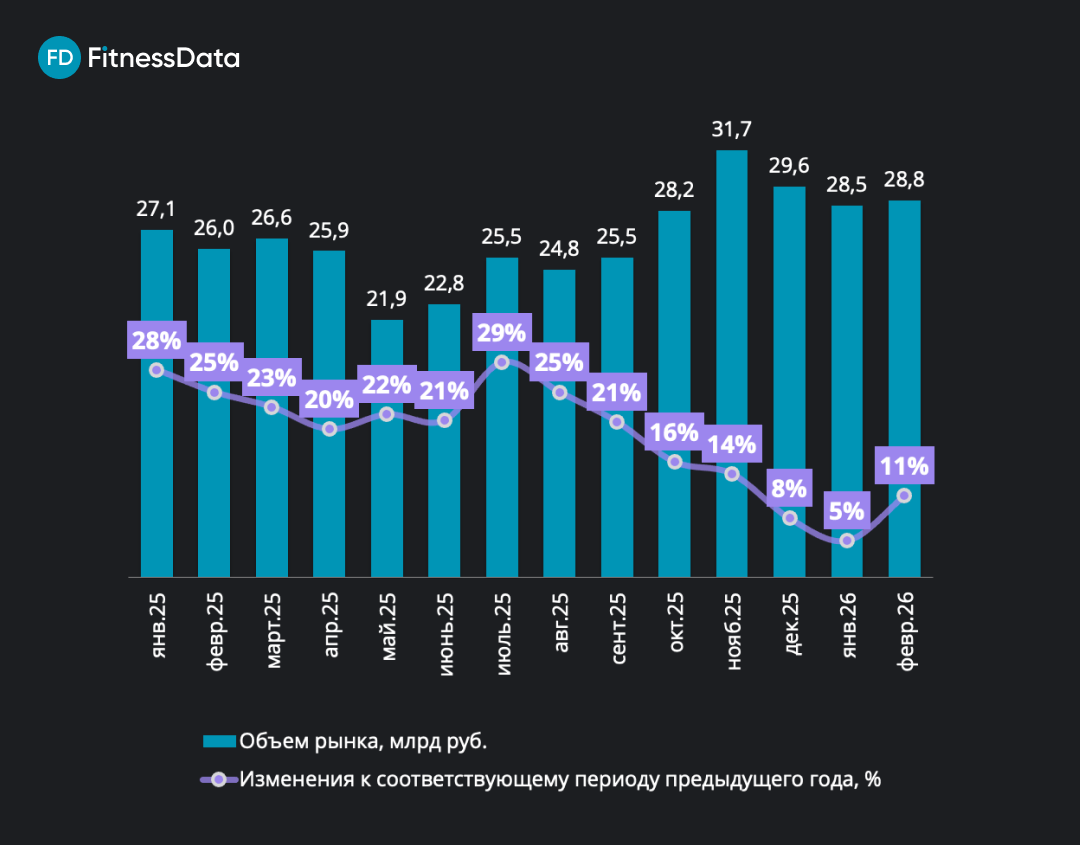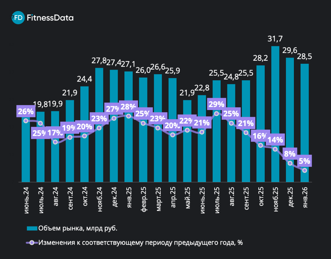 Динамика рынка фитнес-услуг России